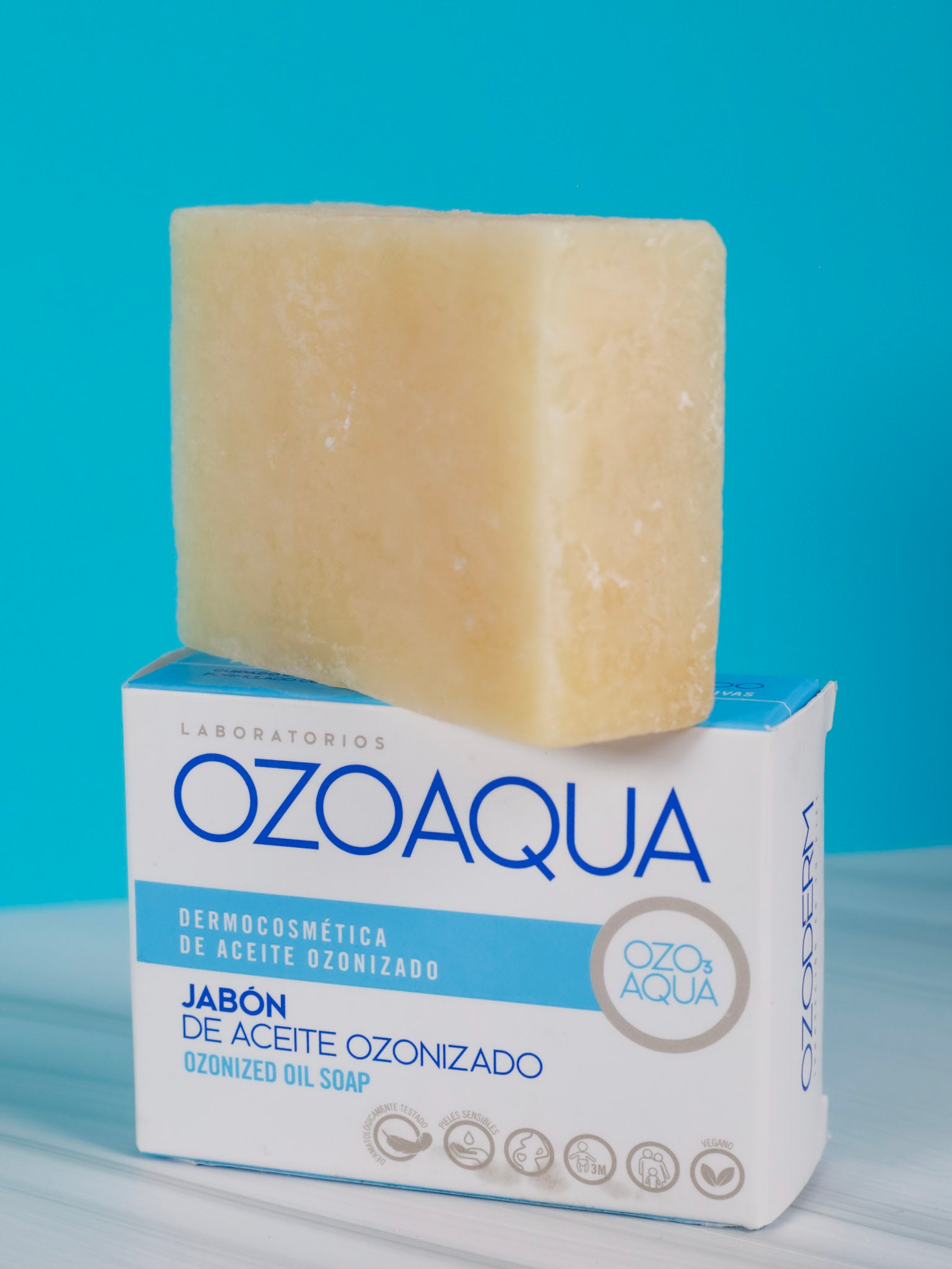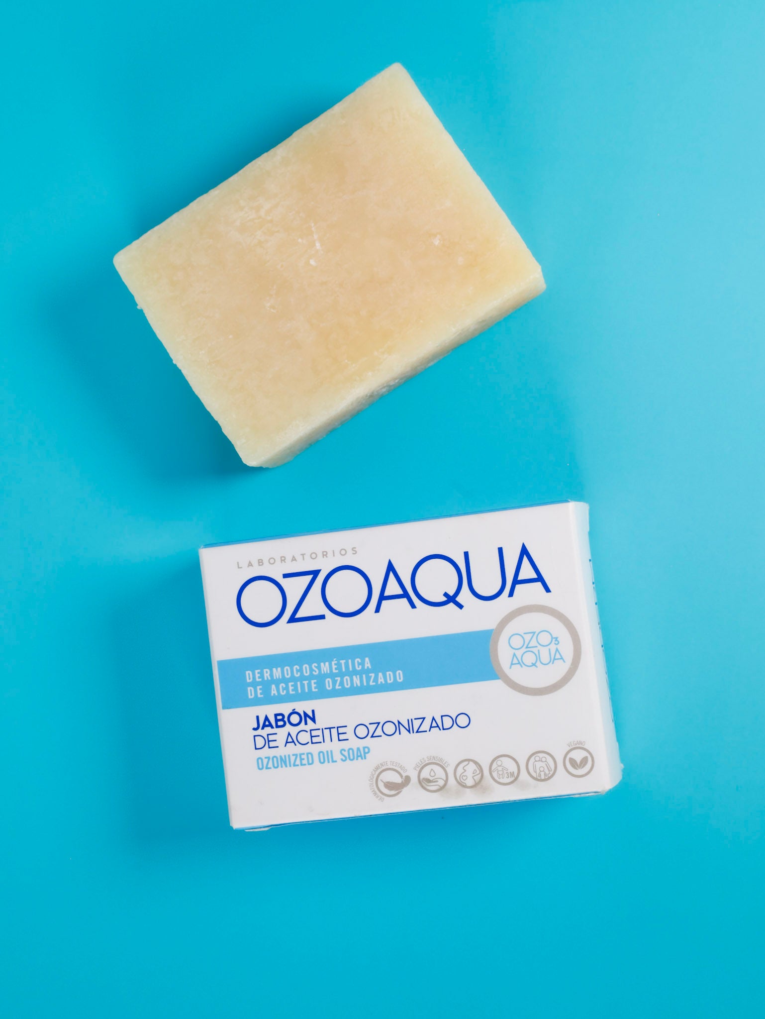 El Jabón de aceite ozonizado OzoAqua elaborado a base de Aceites Vegetales Ozonizados limpia, purifica y oxigena la piel, protegiéndola de agentes externos. Posee propiedades higienizantes, evitando así la posible entrada de gérmenes patógenos a través de microheridas de la piel. A su vez actúa como profiláctico de contagios y ayuda a acondicionar la piel para su posterior tratamiento ya que hidrata y regenera la piel.